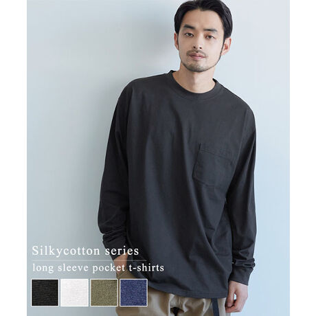 【メンズ】【シルキーコットン】胸ポケット付き 長袖Tシャツ 全4色