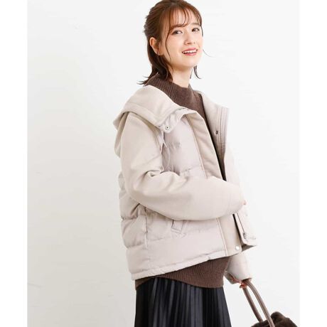 モチモチとした反発感がトレンド感のあるダンボールジャージー素材とタフタ素材の異素材使い。さらっとした肌触りはカジュアルでスポーティーな雰囲気で着こなせます。ダウンが入っているのでしっかりと暖かさがあるのも嬉しい。