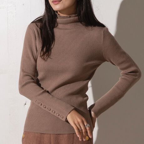 袖ボタンタートルネックリブニット