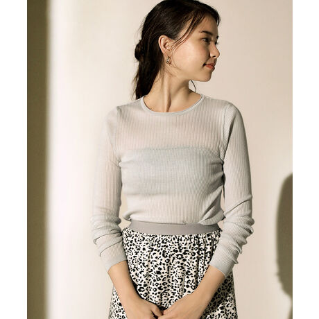 BouJeloud 18G保湿リブ切替ラウンドプルオーバー