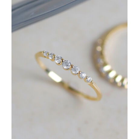 連なるビジューが繊細な輝きを放ち、手元を華やかに仕上げてくれるリング。