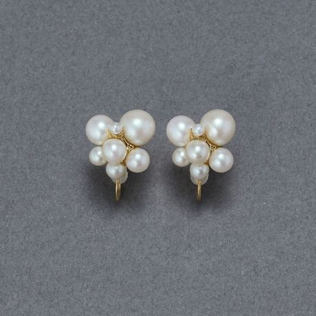 【様々な大きさのパールをランダムにセットしたイヤリング】