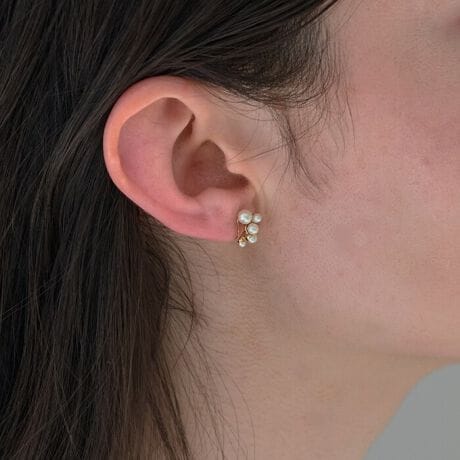【耳たぶを包むように小粒のパールが艶めくイヤリング】