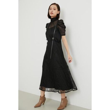 合皮素材のサスペンダーがセットされた高見えするレーススカート。繊細なレースが女性らしくエレガントな印象に。ハシゴレースをポイントでいれたことで甘くなりすぎないデザインに。ゆったりとしたシルエットはストレスフリーな着心地です。フェミニンなブラウスからカジュアルなカットソーなど、コーディネートの楽しみが増えるシーズンレスな1枚です。
