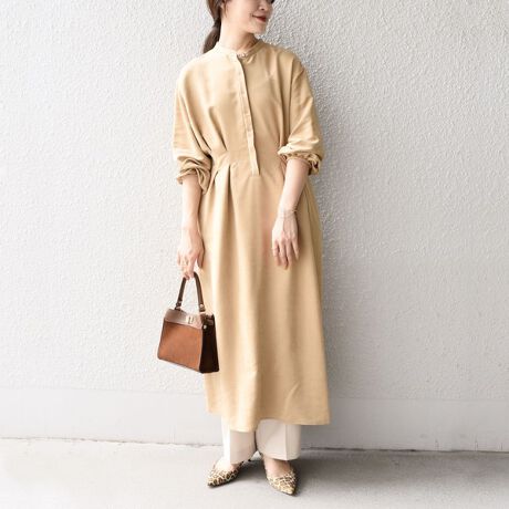 フェイクスエードの中でも肉感があり、光沢がマットな1枚で様になる、ワンピースです。