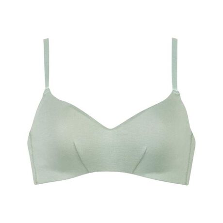 ・アルティメイトピマ(R)糸の高級オーガニックコットン100%を使用。(アルティメイトピマ(R)は大正紡績(株)の登録商標です。)しっとりしたなめらかな風合いが特徴。本体生地は原綿の紡績から染色まで国内仕上げ。縫製は全て日本製・同時引き編み機を使用しているので、均一な編み目で表面が美しく、ほどよい伸びがある生地感・染色は自然を生かしたボタニカルダイ(植物染料に化学染料を配合させた染色)で、バラ・オリーブから色を抽出した色素を使用。IVカラーは水の使用量が少ない染色工程で、環境に配慮した無染色・ストラップはほぼ再生糸を使用し環境に配慮・袋縫い始末で生地が二重構造なので、肌あたりがやさしい・立体感と厚みのある左右一体ピーナッツ型パッド内蔵(取りはずし可能)で、上向きで立体的なバストシルエットでありながらバストトップ間隔が離れず位置が安定