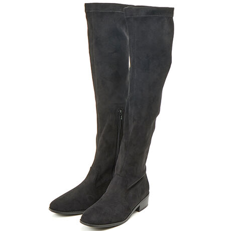柔らかい触り心地のストレッチ素材を使用したフィットニーハイブーツ。