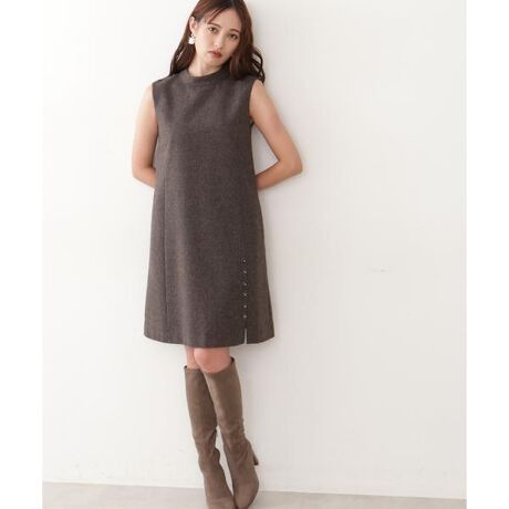 ラメ糸を織り込んだ華やかなツイードワンピース。ハイネックにノースリーブデザインのクラシカルな雰囲気のデザインです。広がりをおさえたシルエットですっきりと、アシンメトリーな飾り釦とスリット入りで脚長効果を期待できます。※後ろファスナー付き・裏地付き ※撮影時照明の関係により、色味が違って見える場合がございます。またパソコン・スマートフォンなどの環境により、若干製品と画像のカラーが異なる場合もございます。予めご了承ください。商品の色味は、商品単品画像をご参照下さい。※商品画像はサンプルのため、色味やサイズ等の仕様に変更がある場合がございますので、予めご了承ください。