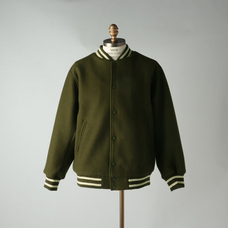 長く親しまれている「スクーカム」のスタジアムジャンパーのリブにラインを入れた別注ジャケット。