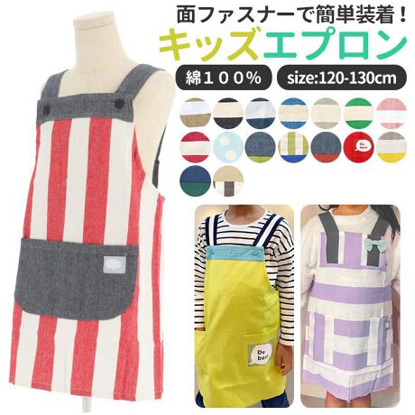 柔らかなコットン生地で快適な着心地。お母さんのお手伝いが楽しくなるお子さま用エプロン♪