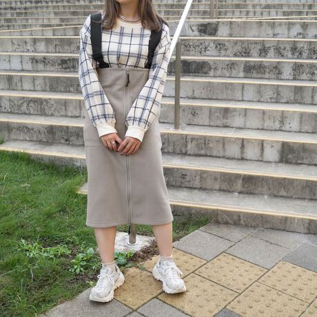 ミリタリーアイテムで注目されているフリースのライナーオーバーオールをジャンスカにアレンジしたアイテム。