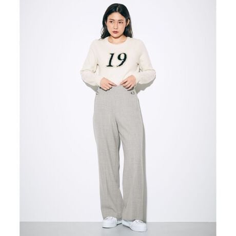 一本あれば様々なシーンやコーディネートに活躍していただける、美シルエットパンツが登場。膨らみ感があり取り扱いやすい、ウールブレンドの弱ストレッチが効いたダブルクロス素材を使用。カジュアルに傾きすぎないセミワイドシルエットが、レッグラインを拾わず、美脚に見せてくれます。バックウエストはゴム仕様の為、見た目はきちんと感を残しつつ着心地楽なのも嬉しいポイント。ベーシックカラーでシンプルな表情に仕上げながらも、釦をデザインアクセントに仕上げました。オンオフ兼用で使える優秀パンツです。