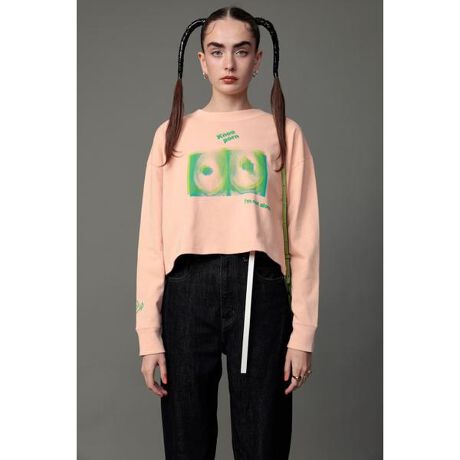 【YUKAHIRAC X SLY PORN OVER TOP】YUKAHIRAC X SLYコラボレーション商品オリジナルの描きおこしZINE『52 days visual diary』の中から抜粋したARTWORKを前後身頃、袖に3色分解で配置したロングスリーブトップス。オーバーサイズのロンTをショート丈にカットしたようなBOX型シルエットのサイズ感で、しっかりとした厚手の天竺素材を使用。着用するだけで目を引き、デイリー使いしやすいアイテム。