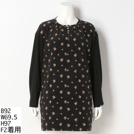 温もり感じるコーデュロイ生地にバード柄の刺繍を施した大人可愛いチュニックブラウス。