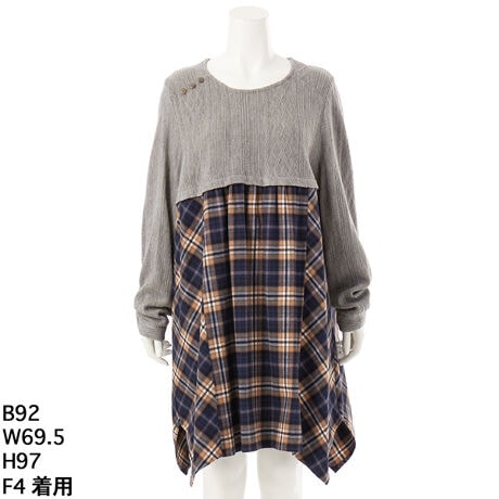 ケーブルxチェック柄ドッキングチュニック