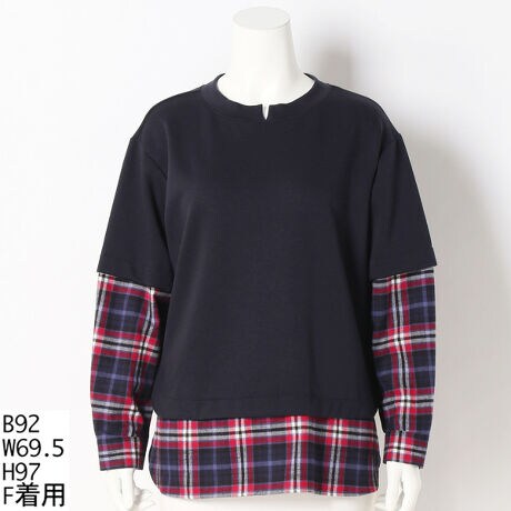 袖と裾に温かみのあるシャギーチェックを使ったレイヤード風のプルオーバー。