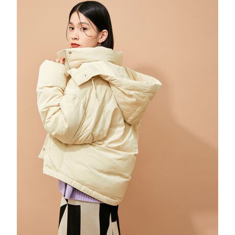 裾をアジャストした、ころんとしたシルエットが女性らしい、ショート丈のダウンブルゾン。
