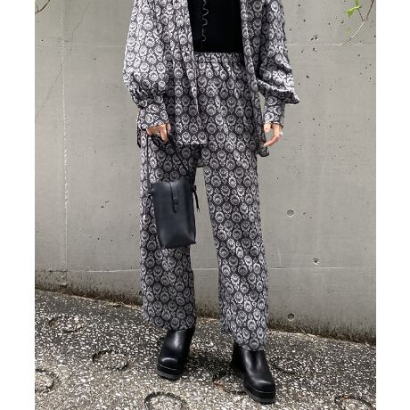 ダマスク柄が目を惹くモードパンツダマスク柄がモードな雰囲気を醸し出す大人なパンツアイテム。履き心地の良いウエストゴムで、楽に履けるのに大人見えする優秀アイテムです◎柄が映えるので、コーデの主役として格好良く履きまわせます◎同柄のシャツ(PB1177)とのセットアップ風コーデや、ワンピース(PG1463)の下にレイヤードさせてのスタイリングもオススメです◎ 伸縮性:あり 透け感:なし