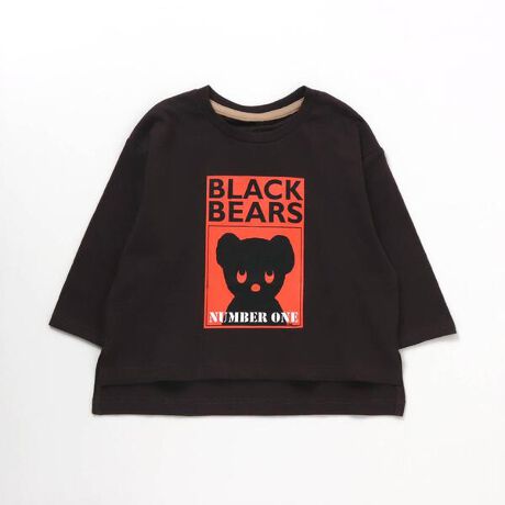 かわいらしいブラック・ベア柄♪前後の裾が長さが異なり、1枚でしっかりおしゃれに決まります。