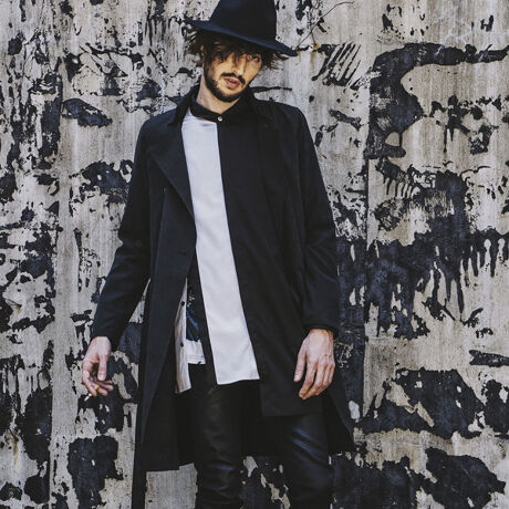 薄く起毛感のあるフェイクスウェードを使ったトレンチコート。