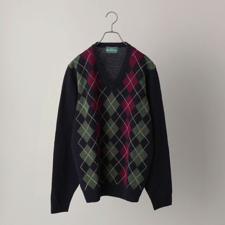 シップスのALAN PAINE:7ゲージ アーガイル Vネック ニット。