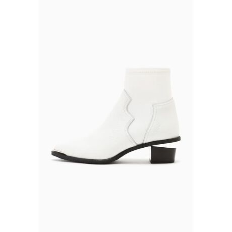 ウエスタンテイストな切り替えが特徴的なミドル丈のブーツ。つま先とヒールに異素材を組み合わせたエッジーなデザインです。履き口をスリムにした異素材使いやポインテッドトゥで足元をシャープに見せてくれます。ほどよい傾斜のあるヒールでスタイルアップを期待できます。