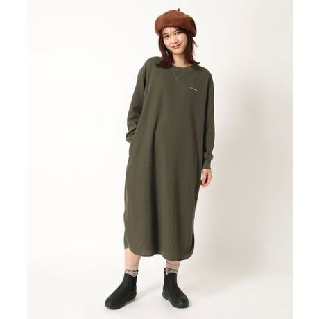 吸汗速乾機能でさらっと着られるワッフル素材のロングワンピース ESCAPE with Columbiaシリーズで人気のシンプルで肌触りの良いロング丈ワンピース。2021年の秋冬は、ポリエステル65%、綿35%のハニカムワッフル生地とキルティングナイロンを組み合わせたスタイルに仕上げました。ワッフル素材でも重くならず、汗による濡れや洗濯でも乾きやすい素材を使用。お手入れもしやすく、ガシガシ着られる秋冬のワードロープに最適な一枚。サイドの裾に大きめのスリットを入れ、足さばきが良く、レギンスやパンツと重ねたレイヤードスタイルもおすすめです。