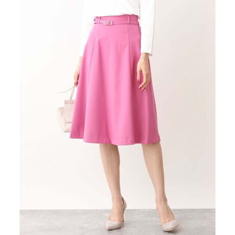 ワンカラーのシンプルデザインで合わせるアイテムを選ばずお使いいただけるフレアスカート。広がりすぎないシルエットでフェミニンながら大人らしいエレガントなスタイルを後押ししてくれます。付属した共布の細ベルトを合わせていただくだけでアクセントの効いたバランスの良いコーディネートに。デイリーからオフィスシーンまでお使いいただける上品スカートは使いやすいベーシックカラーはもちろん華やかなアクセントカラーのご用意もございます。