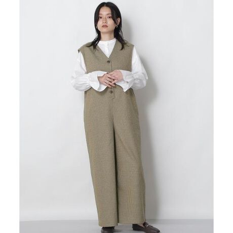 チェック柄のコンビネゾンは、細かな千鳥柄で子供っぽくなり過ぎないのがポイント。ゆったりとしたシルエットで、リラックス感たっぷりな着心地が楽しめます。※モデルの着用画像の場合、光の当たり具合により、実際の色味と異なって見えることがございます。色味は、商品単体の画像をご参照ください。