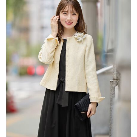 高級感のあるツイードジャケット。お家で洗えてお手入れも楽ラク。