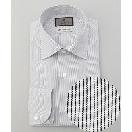 五大陸の【THOMAS MASON】イージーケア_ブラックストライプ_セミワイド ドレスシャツ。