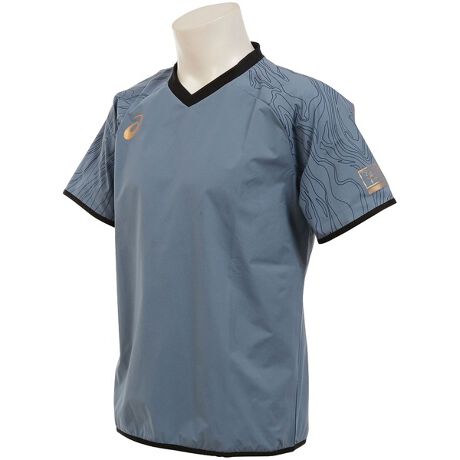 動きを妨げにくいように、ストレッチ性のある素材を使用した半袖ピステ。袖口と裾回りにはストレッチバインダーテープを使用。両肩のパーツには今シーズンのイーグルラインの連動のグラフィックを施しています。