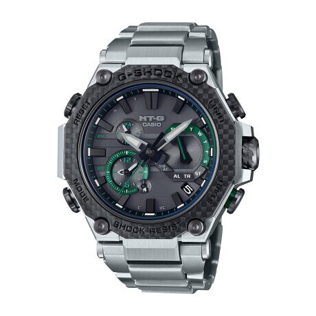 カーボン繊維強化樹脂によるモノコックケースとメタル素材を融合したMTG-B2000をベースに、ベゼルパーツにもカーボン素材を採用し軽量化を図ったモデルが登場。