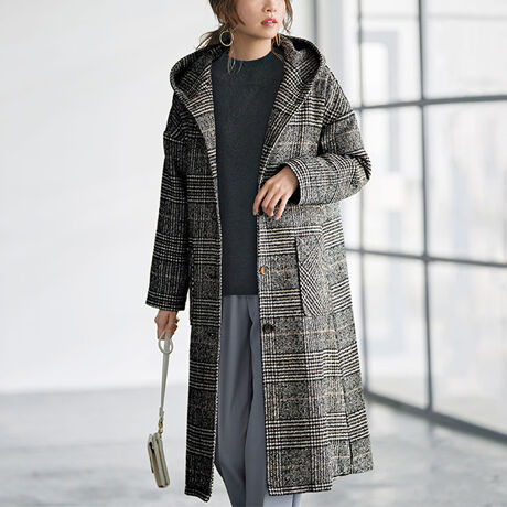 カジュアルなムードで着られるフードコートも、チェック柄なら品良くクラスアップ。
