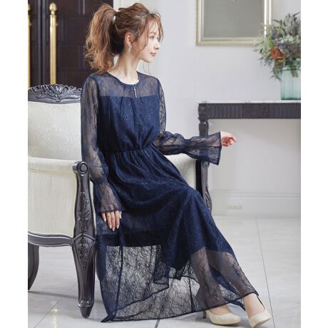 総レースのリッチなロングワンピース。