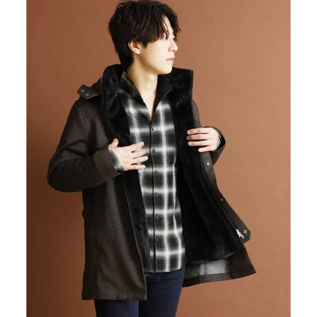 ・フードを外してスタンド衿としても着用出来、ビジネス時の防寒アウターとしても着回しの効くデザインです