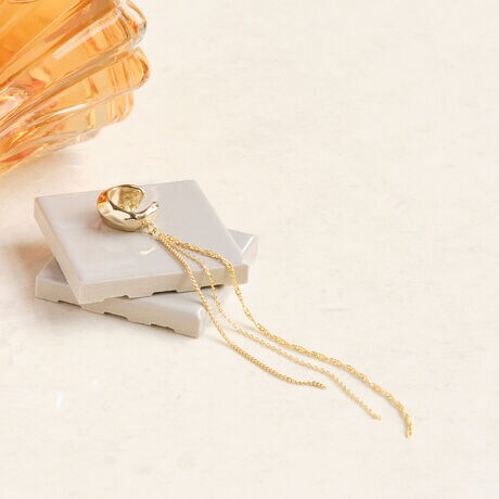 耳の後ろでチェーンが揺れるように着用するのがおすすめです。
