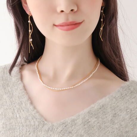 【華奢なチェーンに淡水パールをレイヤードしたネックレス】