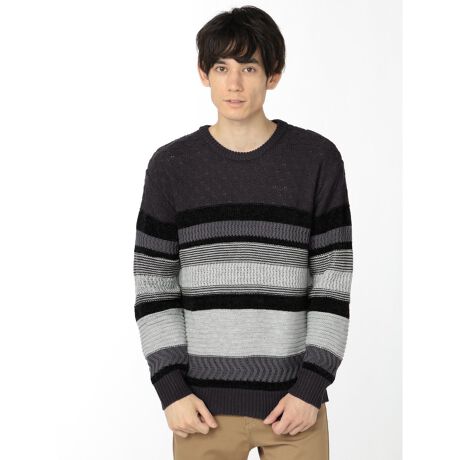 コーディネートの主役にぴったりな、クルーネックのニットプルオーバーです。編地とボーダーを組み合わせた着映えするデザイン。カジュアルから綺麗目まで幅広いスタイリングに着回し可能です。