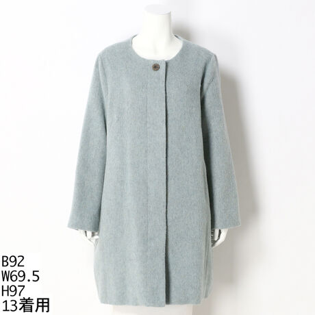 【13号〜19号】ウール混ビーバー ノーカラーコート 【大きいサイズレディース】
