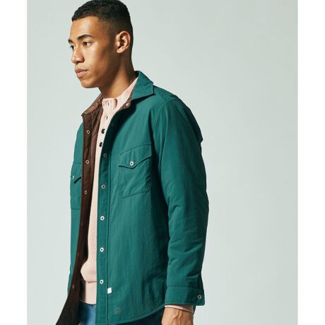 Jプレスのナイロン×中綿キルティング リバシャツ。