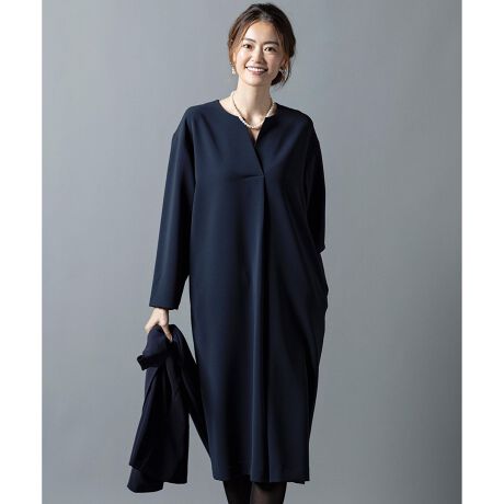 ■デザイン浅いVネックが首周りを美しく見せるワンピースです。ゆとりのあるシンプルなデザインで、体のラインを拾わずすっきりとした印象を与えてくれます。フォーマルなシーンにはもちろん、ちょっとした会食やお出かけにも着回しの効く1枚です。ベーシックなブラック(#005)、ネイビー(#075)と、明るい色味でぐっと華やぐライトグレー(#003)の3色展開です。