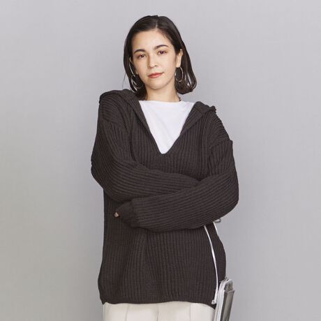 フード型デザインはアウターコーディネートのポイントとしても存在感を発揮。
