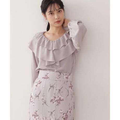立体的なラッフルフリルで顔まわりを華やげるブラウス。大きなダブルフリルを肩まわりから胸元までふんだんに施した構築的なデザインです。柔らかい表情のシルエットは、裾をインするとフリルが映えてバランス良く着られます。ボトムは無地や柄スカートと合わせて雰囲気を変えるのもおすすめです。※撮影時照明の関係により、色味が違って見える場合がございます。またパソコン・スマートフォンなどの環境により、若干製品と画像のカラーが異なる場合もございます。予めご了承ください。商品の色味は、商品単品画像をご参照下さい。※商品画像はサンプルのため、色味やサイズ等の仕様に変更がある場合がございますので、予めご了承ください。