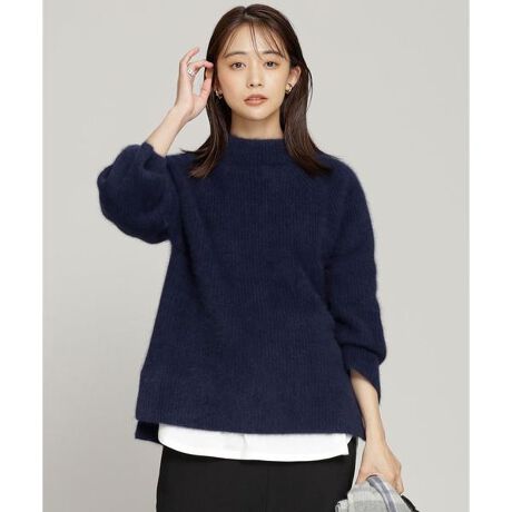 ふんわりとしたFOX混の上品なニットプルオーバー。程よいゆとりを持たせたシルエットに、首を細く綺麗に演出するモックネックのバランスが魅力的。カットソーやブラウスをインしたり、Iラインのスカートやワンピースを合わせるスタイルもおすすめです。