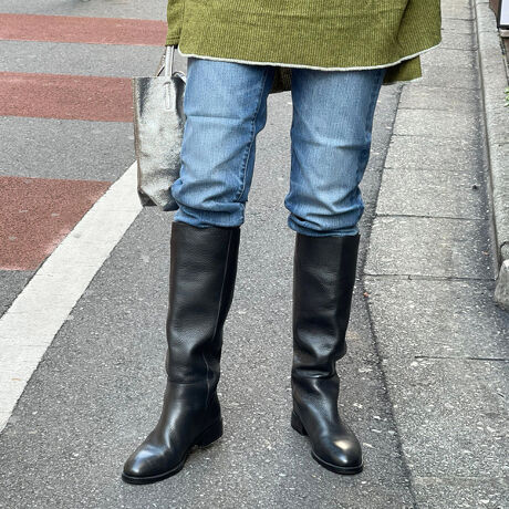 安定感のあるローヒールがカジュアルな印象のレザーロングブーツ