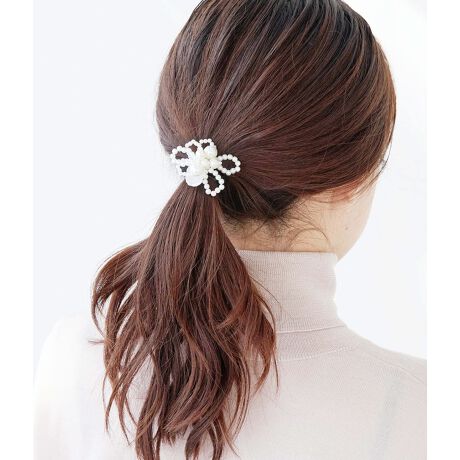 ・パールビーズやクリアパーツで、フラワーモチーフを象った華やかなヘアゴム。