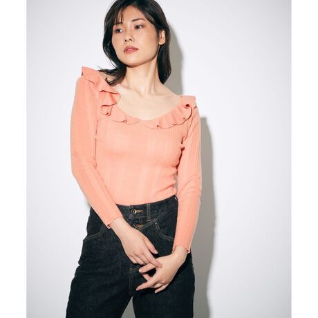 ウール100%の糸で編み立てたハイゲージフリルニット。ボディラインに自然に沿うシルエットと、衿まわりにタックディティールのフリルを施した、フェミニン薫る一品です。プリングしにくい為、イージーケアも魅力的。塩素を使わずに作られた、サスティナブルに配慮されたエコフレンドリーな一枚です。