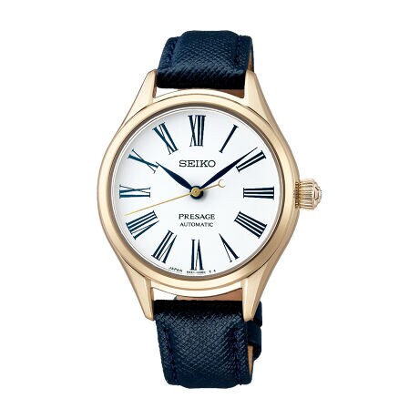 温かみを感じさせるゴールド色のケースと白琺瑯ダイヤル。