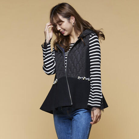 身頃はキルティング加工でスッキリさせて、ペプラム部分と脇下は微起毛素材でデザインにアクセントを。